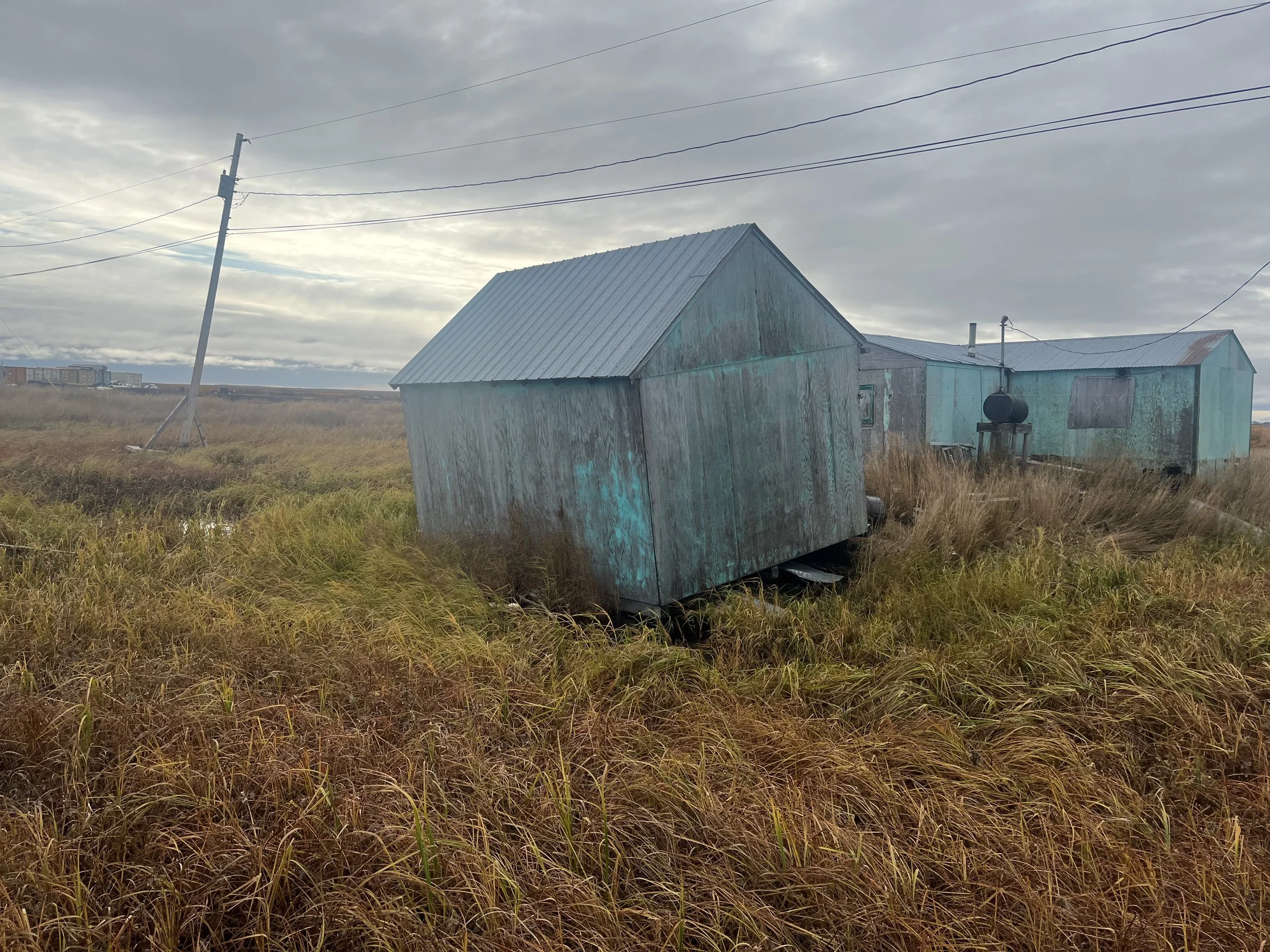 One of the issues with building on the tundra is it’s already a loose material. Also the rivers are powerful, pushing shorelines and forming new, twisting sloughs. Up into the 1960s, local people moved with the seasons and used natural materials to build with. Those materials didn’t test the soil like modern infrastructure or leave harmful chemical byproducts.
